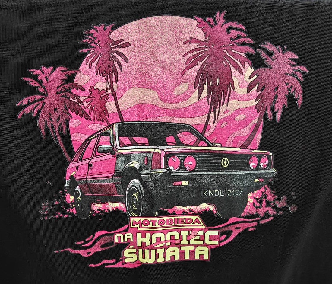 Koszulka upamiętniająca wyprawę Polonezem kundlewiczem przez obie Ameryki